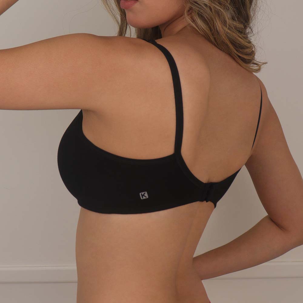Corpiño confeccionado con tejido de lycra de algodón, sin taza ni arco para un total comfort, se adapta cómodamente a la silueta. Prácticos breteles regulables, detalle de coqueto moñito en el pecho, espalda ancha, abrochado detrás. Tejido compuesto por 92% algodón y 8% elastano.