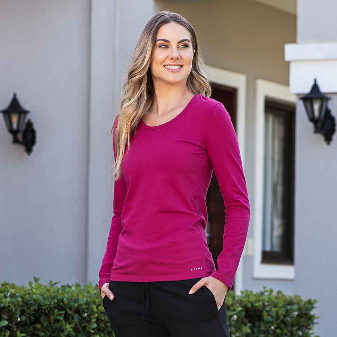 Remera básica mangas largas confeccionada con lycra de algodón con cuello redondo. Para uso casual. Tejido compuesto por 93% algodón y 7% elastano.
